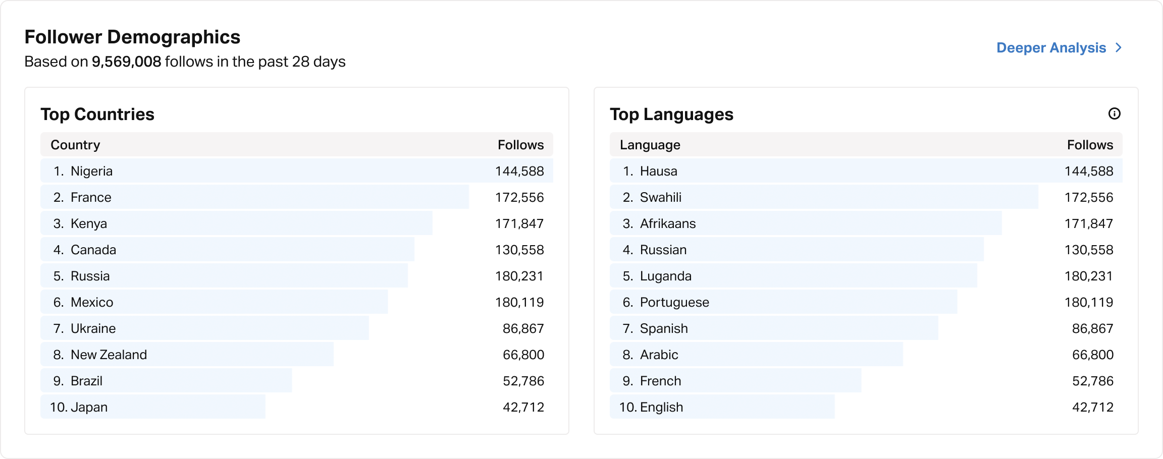 - Followers by Country Map - a visual map showing where your followers are located around the world.