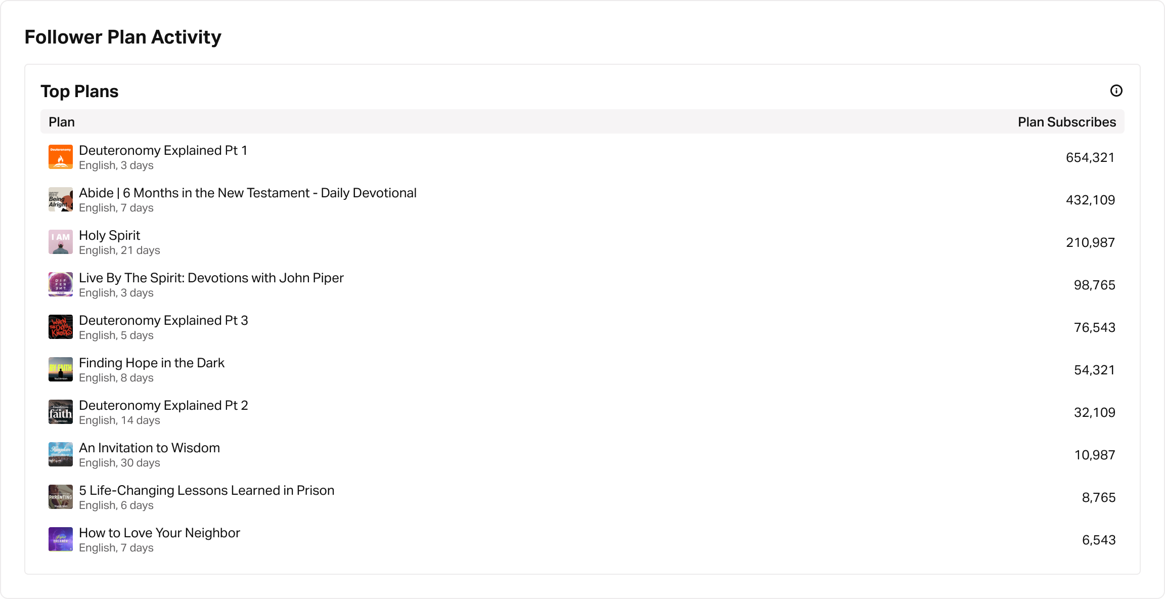 This section shows which of your Plans your current followers have subscribed to the most in the last 28 days. This helps you identify the type of content that connects most with your audience so you can create or share more of it.