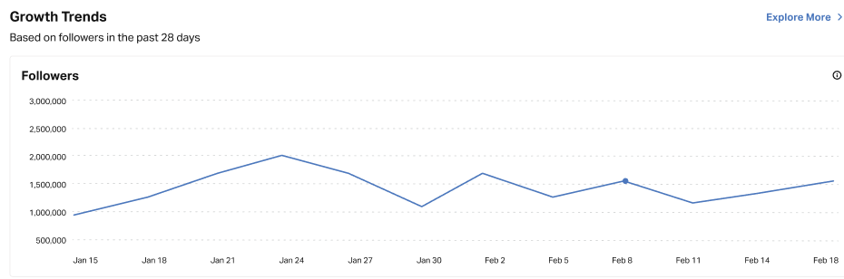 This section helps you understand whether your audience is growing, plateauing, or declining, and how follows and unfollows affect your overall momentum. It shows a timeline of your follower count. By default, this gives you a quick view of how your follower count has changed in the last 28 days.