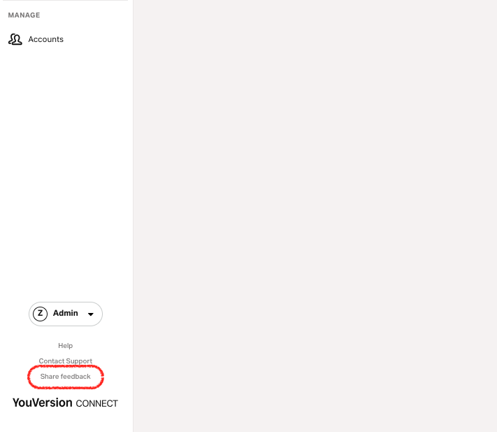 Do you have a suggestion for us? Select the Share Feedback button at the bottom left corner of YouVersion Connect.