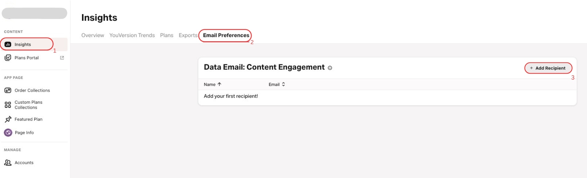 Account owners can add, edit, or remove people receiving monthly emails with valuable insights on the impact of your efforts and generosity to the YouVersion Community.